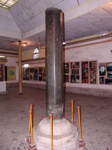 彭士愁戰(zhàn)敗后于后晉天福五年(公元940年)與馬希范議和,把戰(zhàn)爭的經過和議和的條款,鐫刻于銅柱之上。銅柱重五千斤,高丈二尺,入土六心,形為八面,中空,內實鉅錢,柱端覆蓋銅頂,銘誓狀于銅柱之上,立于會溪,宋天禧二年(公元1018年)重立時,又羼刻了一些土官銜名。清中葉,柱上銅頂被盜,沉于江心,柱內銅錢亦被人以飴粘錢殆盡。清光緒十一年(公元1885年),永順府知府張曾揚建亭保護。民國年間亭被毀。”銅柱的銅質,精純光潤;八面所鐫顏、柳體陰文,雖經千載風雨洗刷,霜雪蝕磨,仍清晰如初。溪州銅柱是研究土家族古代歷史的重要文獻。土家族視銅柱為神物。