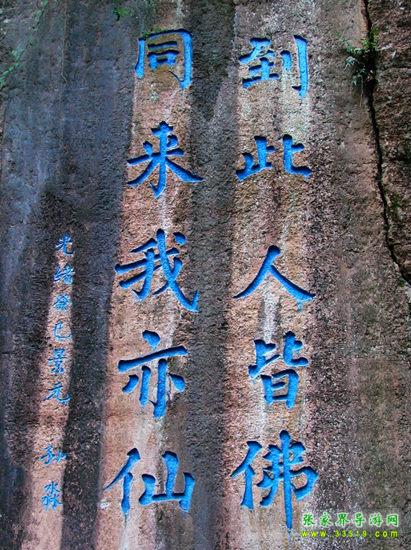 相傳,不二門是觀音菩薩下界時(shí)派天工神匠劈山開鑿而成,為的是經(jīng)由此門引領(lǐng)無(wú)數(shù)失意和愜意的腳步從紅塵走向天界。因此不二門亦以佛家之語(yǔ)稱之為“不二法門”。既然有一道門可以進(jìn)去,也就有一條路可以出來(lái)。人生,不也要通過(guò)一扇或數(shù)扇既狹窄又險(xiǎn)峻的門,方能深入堂奧么?