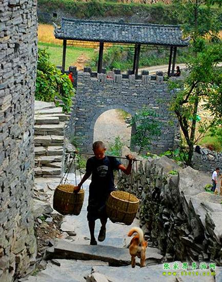 老家寨古苗寨坐落在植被茂盛、生態(tài)環(huán)境良好的棲鳳坡下,四周青山環(huán)繞倒映在如鏡的湖面,八卦圖式建成的寨子,布局精湛,寨內(nèi)的古板小徑,清一色青瓦古墻,曲巷通幽。一片參天的古榛木林,長(zhǎng)在湖邊的小山崗上,守護(hù)著這千年的古寨。傳說(shuō)此地為神鳥(niǎo)鳳凰棲身之地,鳳凰女誕生之處,是苗家青年男女為尋找真正愛(ài)情的勝地。村里的路全部用青石板鋪成,布滿牛糞,屋子也全部是用石頭堆砌而成,一塊一塊的十分整齊,整個(gè)村子都見(jiàn)不到鋼筋水泥,最主要的材料就是石塊,山間、田邊、水邊,人跡所至之處,到處是用石塊堆砌起來(lái)的矮墻,一塊一塊整齊劃一、方方正正,足見(jiàn)苗家人的勤勞。