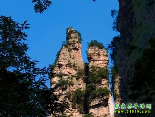 沿田家臺(tái)后坡石徑上行約400米,有一座依山而立的觀景臺(tái)。站立臺(tái)上,見(jiàn)對(duì)面200多米處兩峰相依,酷似一堆夫妻并肩而立,五官俱全,面向東南。那峰頂?shù)臉?shù)木花草恰似他倆的頭發(fā)、頭巾和頭飾,反襯出二人臉面白凈明晰。妻子?jì)尚?,緊傍其夫,低眉含羞,似竊竊私語(yǔ);丈夫粗狂豪達(dá),眉飛色舞,笑口張開(kāi),皓齒畢露,似充滿(mǎn)幸福和滿(mǎn)足。眾多游客觀此景時(shí)無(wú)不驚嘆稱(chēng)奇,以致廣泛傳言:觀賞后,新婚夫婦忠貞不渝,老年夫婦煥發(fā)青春,反目夫婦重歸于好。