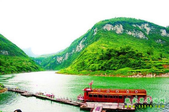 茅巖河漂流段是大庸城西20公里青魚潭往北一段。茅巖河雖灘險(xiǎn)流急,但河床坡度小,水位落差不大;險(xiǎn)灘較短(一般僅20余米長),而險(xiǎn)灘與險(xiǎn)灘間的距離卻較長(一般均逾千米),故浪濤適中,漂流有驚無險(xiǎn)。茅巖河主要景點(diǎn)有:血門溝、洞子坊、茅巖灘、夾兒溝、溫塘溫泉、麻陽古渡、茅巖河峽、水洞子瀑布等。沿河兩岸青山綠水、風(fēng)光如畫,故又稱“百里畫廊”。
