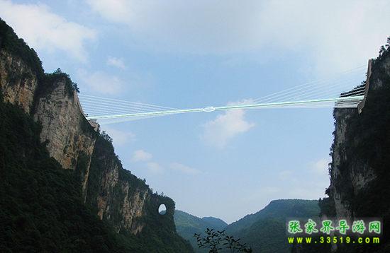 張家界大峽谷玻璃橋位於湖南省的張家界大峽谷景區(qū)內(nèi),距谷底相對高度約400米,全長約370米,橋面全部采用透明玻璃鋪設(shè),橋中心有全球最高的蹦極臺(tái),整個(gè)工程無鋼筋支架,是一種全玻璃結(jié)構(gòu)的橋梁。玻璃橋建成后,將成為世界首座斜拉式高山峽谷玻璃橋;并創(chuàng)下世界最高最長玻璃橋、首次使用新型復(fù)合材料建造橋梁等多項(xiàng)世界之最。將申報(bào)吉尼斯世界紀(jì)錄,游客可以體驗(yàn)“空中漫步”并在空中觀瀑布彩虹。