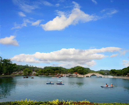 君山又是一個秀麗的綠洲,島上的草木自古就很聞名?,F(xiàn)在每逢初春漲水之前,湖灘上綠草綿綿,野花斑斕,頗具草原風(fēng)味;一到夏天水漲,葦葉青青,水鳥出沒,又是一派蘆蕩景象。君山有各種各樣的樹,多達(dá)200余種,各種花卉,四時怒放,真是青碧連云,香飄全島。叢綠之中,尤以竹林、茶園最富特色。