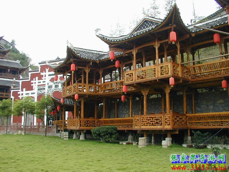 土家族愛群居,愛住吊腳木樓。他們建房都是一村村,一寨寨的,很少單家獨(dú)戶。所建房屋多為木結(jié)構(gòu),小青瓦,花格窗,司檐懸空,木欄扶手,走馬轉(zhuǎn)角,古香古色。一般居家都有小庭院,院前有籬笆,院后有竹篁,青石板鋪路,刨木板裝屋,松明照亮,一家過著日出而作,日落而息的田園寧靜生活。今天,土家人住的吊腳樓已大變樣了。許多村寨有了電,還有了廣播和電視。