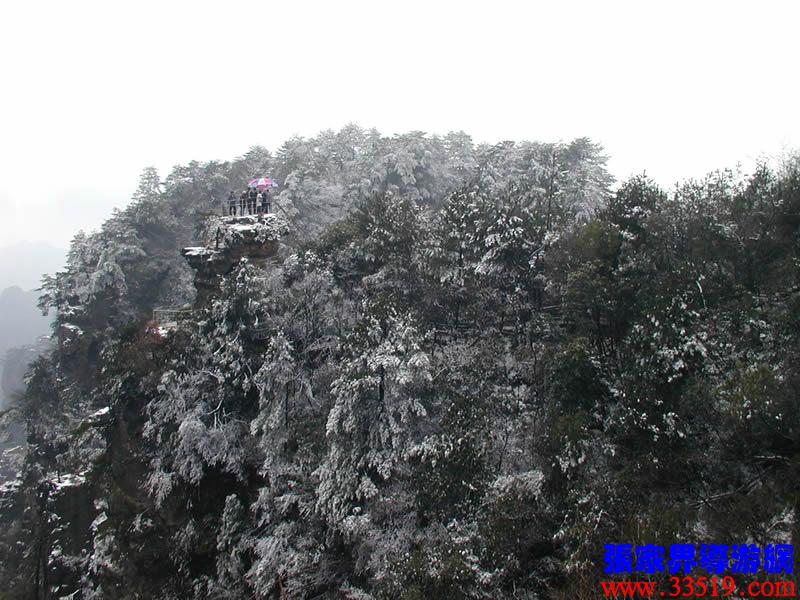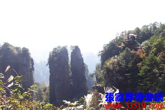 (六奇閣)請(qǐng)各位猜猜,這“六奇”是指哪“六奇”?大多數(shù)講對(duì)了,準(zhǔn)確地說是指山奇、水奇、云奇、石奇、動(dòng)物奇、植物奇。“江山留勝跡,我輩復(fù)登臨”;“欲窮千里目,更上一層樓”。站在這里,可以看到袁家界、楊家界、天子山、朝天觀、三姐妹峰