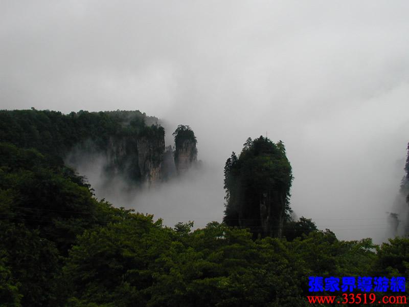 現(xiàn)在我們乘車前往天子山自然保護(hù)區(qū)。天子山,海拔1262.5米,因當(dāng)?shù)?a class="insidelink" href="http://m.mriyar.com/fengqing/" title="土家族">土家族領(lǐng)袖向大坤被軍擁為“向王天子”而得名。天子山為臺(tái)地地貌,中間高,四周低,因而視野開闊,透視線長(zhǎng),層次分明,氣勢(shì)雄渾。天子山觀景,與黃石寨(黃獅寨)、金鞭溪的感覺不同。游黃石寨(黃獅寨),您是與群峰對(duì)坐,與群峰平視;游金鞭溪,您是“人在畫圖中”仰視高聳于溪兩岸的群峰;而在天子山,則可俯視大千世界,您會(huì)生出“山上無(wú)山我獨(dú)尊”的無(wú)限豪情。天子山有四大奇觀:峰林、云海、日出、冬雪。一幅幅雄偉壯觀、奇特迷人的景象,相信會(huì)讓大家大飽眼福而流邊忘返。
