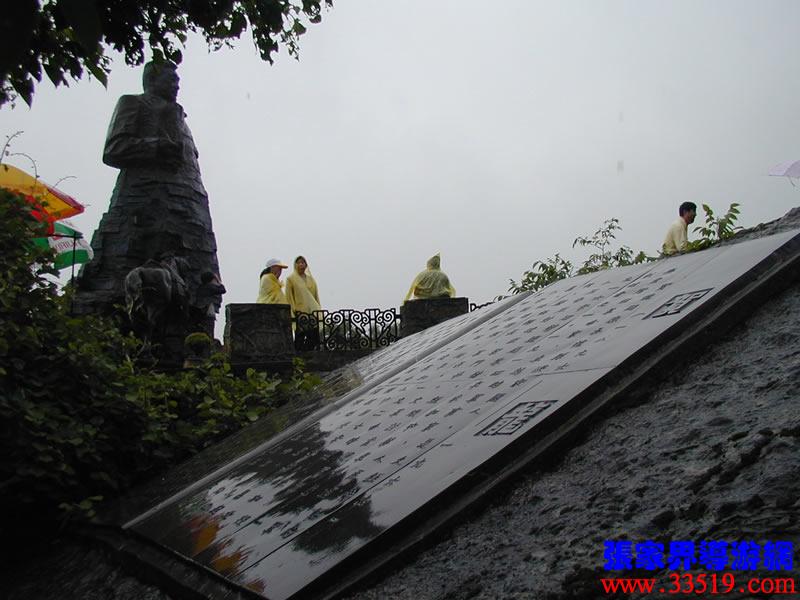 (賀龍銅像)賀龍?jiān)獛浭侵腥A人民共和國(guó)的開國(guó)元?jiǎng)?,人民解放軍的締造者之一。他就出生在天子山西邊桑植縣洪家關(guān)的一個(gè)農(nóng)民家庭,從兩把菜刀砍鹽局首義起,一生充滿傳奇色彩,元帥家鄉(xiāng)流傳著無(wú)數(shù)關(guān)于他的故事與傳說(shuō)。天子山一帶曾經(jīng)是賀龍、任弼時(shí)、肖克、王震等將軍打過(guò)游擊的地方。一回,賀龍?jiān)阼尮乃幻駡F(tuán)包圍了,當(dāng)?shù)乩习傩占敝猩?,把賀龍卷在斗墊里,躲過(guò)了殺身之禍。這個(gè)故事至今還在這一帶流傳。