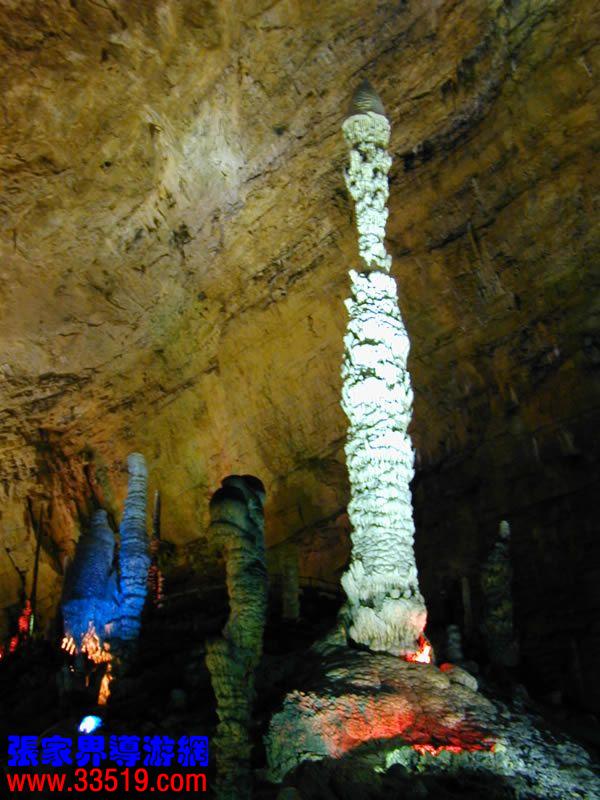 (定海神針)這是黃龍洞的標志景點,全高19.2米,圍徑40公分,為黃龍洞最高石筍,兩頭粗中間細,最細處直徑只有10厘米,如果按專家測定的黃龍洞石筍的年平均生長速度僅0.1毫米,那么依此推算,“定海神針”生長發(fā)育至今已有20萬年歷史了,而且仍在繼續(xù)生長,如果再長6萬年,再長6米,就可直抵穹頂而“頂天立地”了!為了更好地保護這一標志景點,黃龍洞景區(qū)管理部門特地為“定海神針”買下一億元巨額保險,創(chuàng)全國為世界自然資源性遺產(chǎn)買保險之先河
