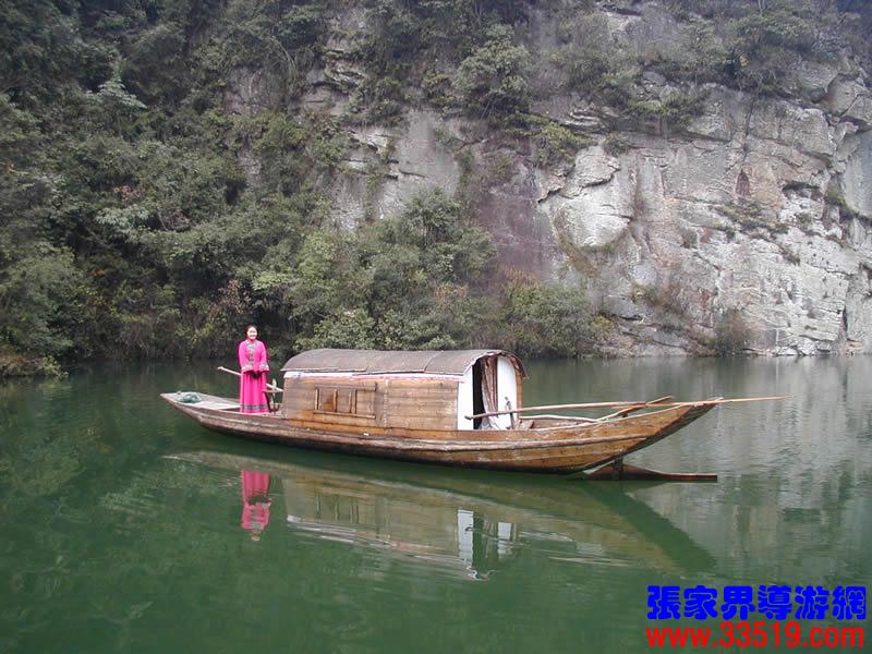 (寶峰湖)云梯直上最高層,忽見粼粼碧水深。果然高峽出平湖,人間瑤池此處尋。寶峰湖水深72米,湖長約2華里,水闊處達150余米,狹窄處公10余米,蓄水量為400多萬立方米。您腳下的這座水壩壩址,在我國水壩選址筑湖史上,堪稱奇跡:壩高80米,最寬處12米,最窄處僅3米。這座風光秀麗的山湖始建于1974年,1979年建成,主要用于山區(qū)小水電和農(nóng)田灌溉。利用它做旅游風景資源,則是從1984年才開始的。隨著武陵源區(qū)旅游事業(yè)的蓬勃發(fā)展,這座美麗的山湖越來越為中外游客所鐘愛。
