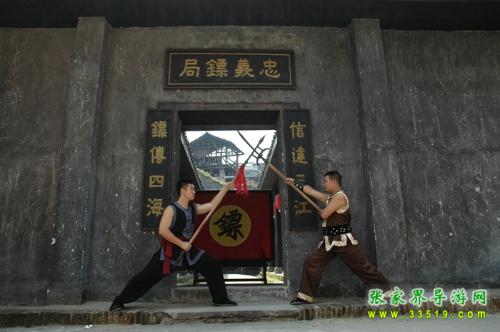 忠義鏢局,它始建于清乾隆四十二年(1777),位于洪江龍船沖,這里會(huì)館、錢莊、豪宅林立,堪稱洪江的曼哈頓。與我們?cè)?a class="insidelink" href="http://m.mriyar.com/hongjiang/" target="_blank" title="洪江古商城">古商城看到的窨子屋不同,這是一座典型的北方四合院,前庭后院,布局嚴(yán)謹(jǐn),軸線明確,左右對(duì)稱,主次分明。前院是鏢師練功習(xí)武之地,墻壁上書有“忠”、“孝”、“禮”、“義”四字和“十八羅漢練功圖”;后院為鏢師起居和洽談生意之所,內(nèi)供奉關(guān)武大帝。忠義鏢局主要為豪商巨賈押運(yùn)銀票、貨物,看家護(hù)院,坐夜守店,也開館收徒,傳授武藝。忠義鏢局的掌門人劉大鵬,湖南長沙人,幼時(shí)即入嵩山少林寺習(xí)武,不僅精通十八般武藝,而且頭腦精明,他把鏢局開在這洪江最繁華的金融一條街,足見他的經(jīng)商意識(shí)和人面廣了。現(xiàn)在忠義鏢局現(xiàn)場(chǎng)表演古代押鏢、行鏢全過程,是人們了解中國古代鏢行歷史文化的活性博物館。有興趣的朋友可以去洪江古商城親自感受一下當(dāng)時(shí)押鏢的情景吧。