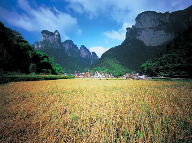 下 午: 乘環(huán)保車40分鐘抵達有“峰林之王”之稱的天子山自然風景區(qū):“誰人識得天子面,歸來不看天下山”,可見天子山風光旖旎,景色秀美,景點眾多,游覽集自然于人文于一體的賀龍公園、御筆峰、仙女獻花、西海石林、石船出海等,可登上天子山最高點天子閣,遠眺天子山全景。步行2小時下山(可自費乘天子山索道下山,67元/人)到達十里畫廊風景區(qū),可游覽到:張家界十大絕景之一的采藥老人、三姐妹峰、黃昏戀、金雞報曉、夫妻抱子、天狗望月等景點(可自費乘觀光小火車游覽全程,單程38元/人)。