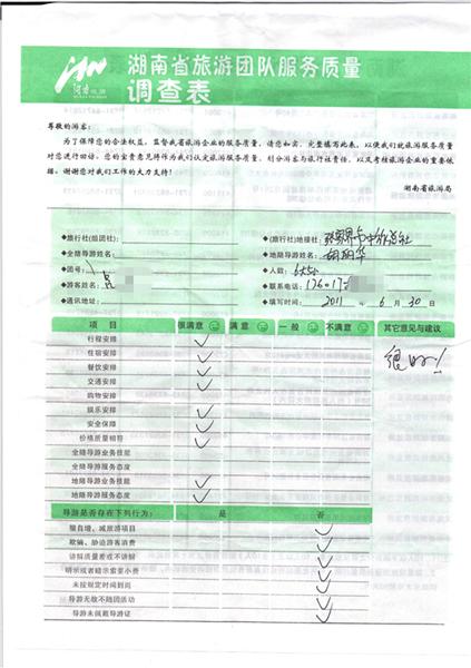 2011年6月30日呂先生一行11人旅游質(zhì)量反饋:很好!