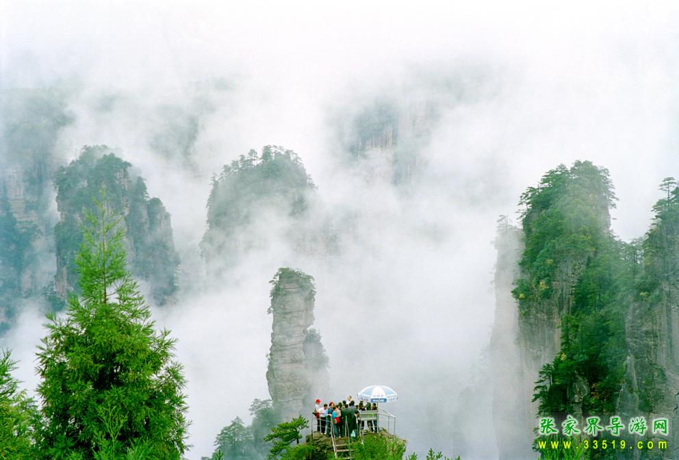 18號,天下起了小雨,昨天跟陳導約好8點鐘在酒店出發(fā)進山的,所以今天7點就起來了,8點陳導準時到了,我們退了房就跟她到汽車站去,因為我們的早餐還沒吃,她帶我們到車站附近買,這時發(fā)生了小意外,她的手機不小心給小偷扒走了,心里想,發(fā)生這樣的事情,我們的行程質量會不會有所降低呢?經過1個多小時的路程,我們先到天子山鎮(zhèn)的入口進山,陳導說我們行里太多了先要把行理放到客棧里(這也對,我們四個女的,每人拉著一個大拉箱,如果不先放下,是挺辛苦的)。我們住的客棧,條件一般,但還可以接受的,到客棧已經是中午了,先吃午餐,正餐四菜一湯,二肉二菜的,味道還不錯。午餐后我們就出發(fā)出,我們先去袁家界景區(qū),坐公園里的環(huán)保車,大約十多分鐘就到了,先看天下第一橋,雨還是不停的下,霧很大,什么景都白茫茫的一片,真是掃興。很快就看完了,陳導問我們要不要到下個景點,但霧太大了,看上去也是一樣,我們就打消了去景點,不如逛一下景區(qū)的購物點,買點手信,一逛就是一個多小時,買了一大堆,這里的消費比其它地方要便宜,一點都不貴,這時天放晴了,和導游走失了,但我們自己也會回去,就坐上環(huán)保車回客棧去,在回去的時候經過了一個景點—烏龍寨,我們下車了,想自己去看一下這景點,這時導游打電話給我們說他回客棧了,我們說要去這個景點,他說叫我們等她,她馬上過來。等了20分鐘還見不到他我們決定自己上去,剛走了不到5分鐘,她就跟上來了,說這里要兩個多小時才可以走完,環(huán)保車5點半就收車了,現在已經快4點,叩我們走快點,一路走著也真的好累,但上到一個叫天波府的景點,人馬上興奮起來,這里太美了,走上去的路也太險了吧,真的難以用詞語來形容。聽陳導說我們現在見到的就是最美的,霧散開了,仙景一樣,真的值回票價了。欣賞完這仙景我們要加快腳步下山,因為車子不等人羅。還好剛好趕上最后一班車,不過腳好累呀!不過晚飯后我們四個人還是戰(zhàn)斗了一下。