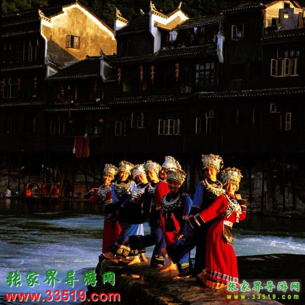 金鞭溪因流經(jīng)金鞭巖而得名,全長5710米,穿行于絕壁奇峰之間,溪谷有繁茂的植被,溪水四季清澈,被稱為“山水畫廊”、“人間仙境”。有詩贊曰:“清清流水青青山,山如畫屏人如仙,仙人若在畫中走,一步一望一重天”。途中你會看到點歌臺,那里有土家姑娘時刻準(zhǔn)備為游人唱民族歌曲,只要付十元錢她們就會為你引吭高歌,當(dāng)然,如果你不想花這個錢,也可以在一邊聽聽別人點的歌,聽完后走人。